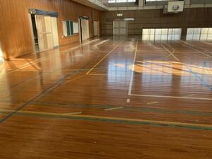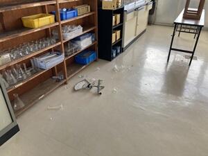 本校も大きな被害はありませんでしたが、高所の物や額、トロフィー等落ちたり、体育館のフロア全面に天井から小さな粒状の物が落ちていました。