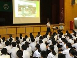 8月28日(水)の全校集会で、3年の木村さんに「日向市中学生平和交流団」(8月7日~10日」として「長崎市ピースフォーラム」に派遣され、学んできたことを発表してもらいました。原爆資料館や被爆者の方の話、ピースボランティアの活動、平和祈念式典に参加することを通して肌で感じた、戦争の悲惨さや原爆の恐ろしさ、平和の尊さを全校生徒にしっかり伝えてくれました。