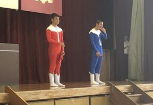 9/14(土)に開催の令和元年度体育大会の結団式が、8/1(木)に実施されました、実行委員長の大会スローガン「疾風迅雷~最後までつなげ結晶バトン」の発表に続き、団長による「ストラックアウト」対決で、団色がA団(成合団長)が「赤」、B団(平野団長)が「青」に決定し、学校から団旗が授与されました。その後、各団に分かれ団長、副団長、リーダーの紹介や団顧問、担当職員の発表があり、いよいよ体育大会が動き始まめました。主催の実行委員会の皆さんお疲れさまでした。コスチュームあり、実況中継あり、ユニークな結団式でつかみはOKです。「段取り八分、仕事二分」を心がけて大会スローガンを達成してください。