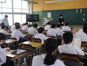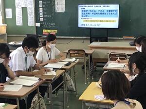 9/6(月)、森先生が初任者研修として道徳の研究授業を行いました。若さ溢れる元気のいい授業で、今後の成長が非常に楽しみです。1年生の先生を中心に多くの先生が参観に来られました。