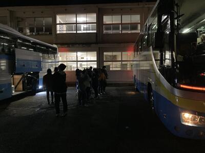 いよいよ修学旅行がスタートしました。5時15分富島中を出発しました。朝早くにもかかわらず、多くのお見送りの中、パスが出発しました。