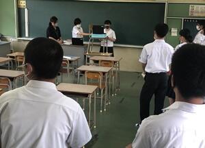 5/28の6校時、「令和3年度生徒総会の前半」を実施しました。例年は全校生徒が体育館に集まって討議するのが、3密を防ぐためにZoomを活用して各学級においてオンラインで行いました。