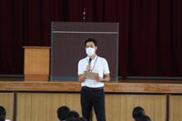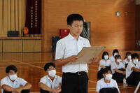 始業式では、各学年の代表者が2学期の抱負を述べてくれました(1年生:川﨑陽葵さん 2年生: