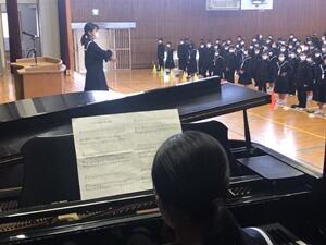 12/24(木)は「2学期の終業の日」です。いろいろなことがありましたが、なんとか2学期を終えることができました。終業式では、学年代表が「2学期の反省」と「3学期の抱負」を発表してくれました。校長のあいさつの後、今年度「初」の校歌斉唱も行いました(もちろん、マスク着用したうえで)。