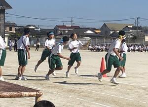 10/26(月)、雨天順延になった「富島中特別スポーツ大会2020」を秋晴れの下開催しました。今日はコロナ禍の中、平日で半日、応援団なしなど制限が多い中での実施となりましたが、大会スローガン「全ての想いをここにぶつけて燃え上がれ」として、悶々とした気分を発散できたと思います。