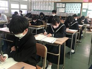 1/28(金)、3年生は2/2(水)に実施される「県立高校推薦入試の事前指導」を行いました。今年度から自己推薦制度に代わったので、いかに自分のよさをアピールできるかが大切です。試験は、学力検査、面接、作文、適性検査など、高校によって違います。