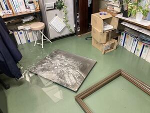 本校も大きな被害はありませんでしたが、高所の物や額、トロフィー等落ちたり、体育館のフロア全面に天井から小さな粒状の物が落ちていました。