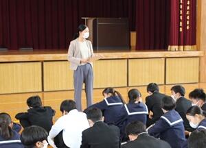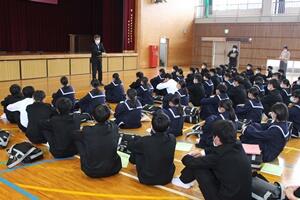 1/6(木)3学期始業の日、体育館で全校生徒が集まり、「始業式」を実施しました。他県でのオミクロン株の感染拡大の状況を見ると、できてよかった言うのが本音です。