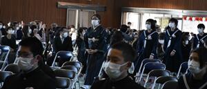 3/16(月)、コロナウイルス感染拡大防止に伴い、規模縮小、時間短縮による異例づくめの卒業式を実施しました。来賓なし、在校生なし、吹奏楽なし、全員卒業証書授与なし等、大変寂しいものでした。でも卒業生は最後までしっかり前を向いて、式に臨んでいました。