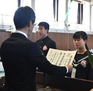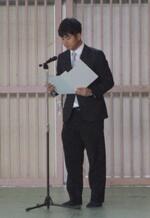 式中は、在校生を代表して、生徒会副会長の前谷朱音さんが、「自分たちが誇れるような学校を創りましょう」と歓迎の言葉を述べてくれました。それに対して、新入生を代表して甲斐優作くんが、「不安もあるが、先輩方から学び一日も早く学校生活に慣れるように頑張りたい」と初々しく新入生誓いの言葉を述べてくれました。