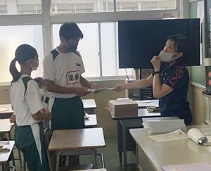 10/11(月)、右松先生が初期研修の一環として、道徳の研究授業を実施しました。