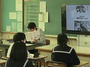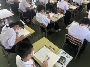 また、本校は毎週月曜日の4時間目は道徳の時間として、全校一斉で授業を行います。「命を大切にする旬間」の取組として、「命」を題材にした授業も行われていました。