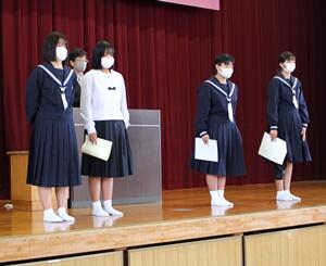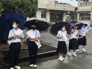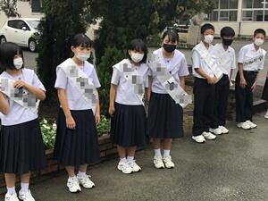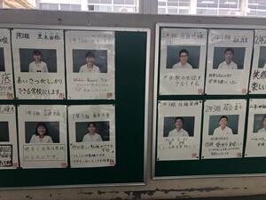 各学級で推薦された立候補は、9/8(水)に選管から注意事項を受けた後、選挙ポスターやタスキを作り、9/14(火)から朝の登校時や給食時に選挙運動を行っています。