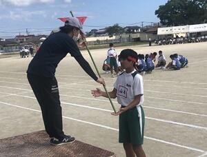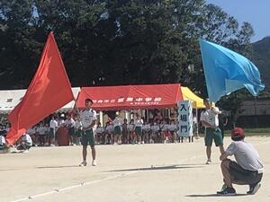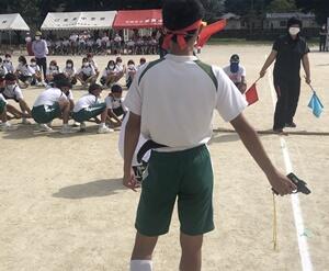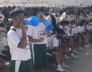 ↓校長あいさつ「後輩に語り継がれる体育大会に!」