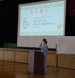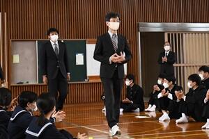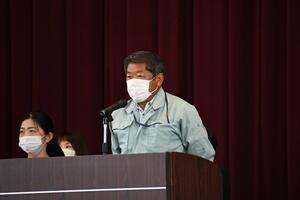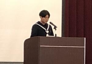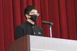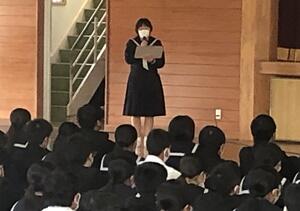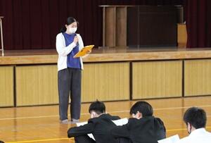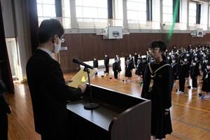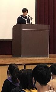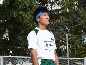 ↓大会スローガン発表(飯干生徒会長)