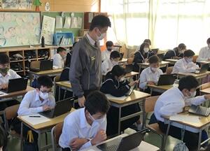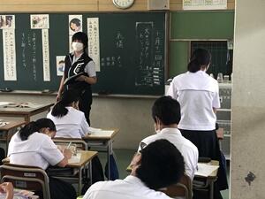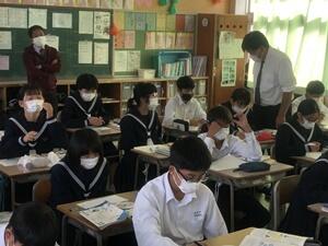 そのような中、2年生の週初めの1時間目の授業を参観に行ったら、教頭先生が2年4組の社会を指導していました!