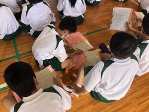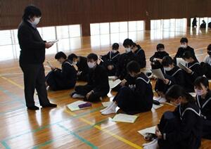 ↓朗読を聞く2年生