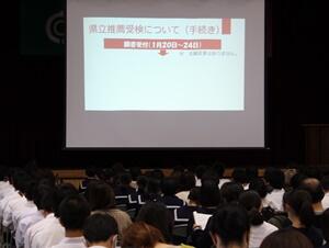 3年生は親子で少しも聞き漏らさないようにと真剣に説明を聞き、高校の先生は、一人でも多くの3年生に来てもらおうと必死に説明していました。