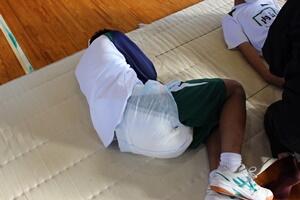 全校体育、突然の雨
