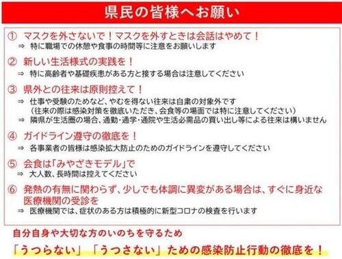 「県外との往来自粛も引き続き要請する。県内の感染状況は落ち着いているものの、国の宣言は継続中で、隣県では変異株が確認されるなど県外で感染が収まっていないため。一方、4人以下、2時間以内としている会食制限や高齢者、障害者施設での面会制限は今月23日で終了し、2月24日(水)から通常の感染対策を徹底した上での行動を求める。」ということです。