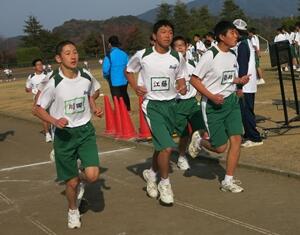 校内駅伝・マラソン大会、「駅伝の部」の様子です。