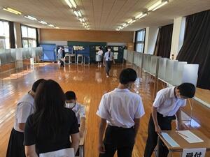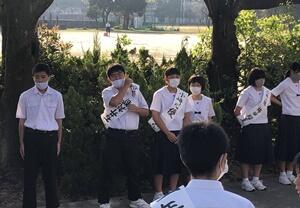 10/1(木)、「生徒会役員選挙投票日」でした。立候補者は朝から最後の選挙運動を行い、投票直前の立会演説会では有権者(生徒)に「清き一票」最後のお願いをしました。さあ、選挙結果が待たれます。