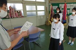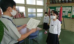 10/14(水)の昼休み、校長室において「東臼杵地区サイエンスコンクール」と「日向地区英語暗唱・弁論大会」の表彰伝達式を行いました。本来ならば主催者が表彰するべきところを、今回のコロナで表彰式ができなかったりするときに、代わりに校長が表彰を行いました。