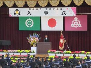 4/10(金)、新入生の授業が始まり、最初は、学級活動自己紹介や係、学級目標決め、学校内見学などが続きました。その合間で、学校生活オリエンテーションや清掃集会が開かれ、富島中学校の一員となるべく、授業や集会、清掃、給食、部活動等のいろいろな約束事が次々と話されました。頭の中はグチャグチャでしょうが、大丈夫です。経験しながら身につくものですから。