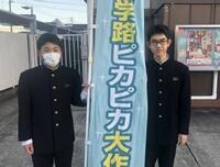 11/29(金)、新生徒会による第1回「通学路ピカピカ大作戦」を実施しました。これは登校しながら通学路のゴミ拾いをするもので、代々の生徒会が継承している活動です。同時に、あいさつの輪も広がっています。