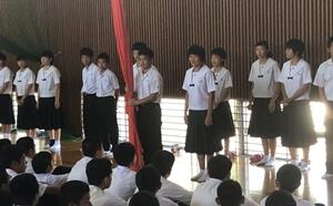 終業式では、各学年代表の1年 淡路さん、2年 前谷さん、3年 塩田さんが1学期を振り返り、成長したことや夏休みや2学期の課題などを話してくれました。他の皆さんも通知表を見て、自分をしっかり振り返り、「普段できない事をする」充実した37日間の夏休みにしてください。