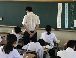 9/6(月)、森先生が初任者研修として道徳の研究授業を行いました。若さ溢れる元気のいい授業で、今後の成長が非常に楽しみです。1年生の先生を中心に多くの先生が参観に来られました。