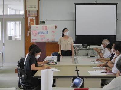 2点を中心に各学校区ごとにグループワークで話し合いました。話合いは、KJ法で意見をカードに記入し、