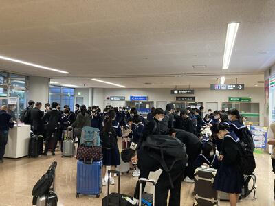 宮崎空港から大阪空港に着きました。生徒はみんな元気です。