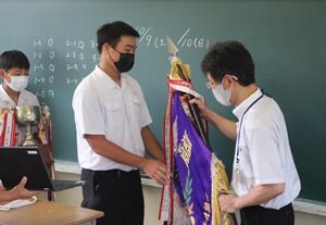 8/26(木)、今年もコロナ禍の「2学期始業の日」となりました。始業式は、全校で集まることはできませんので、リモートで実施しました。このような状況ですが、各学年代表が、しっかり2学期の抱負を発表してくれました。校長からは「不安や心配があるときは、周りの人に話をするように。」などの話がありました。最後に、九州大会優勝のラグビー部の表彰を行いました。