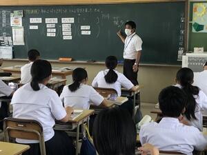そのような中、2年生の週初めの1時間目の授業を参観に行ったら、教頭先生が2年4組の社会を指導していました!