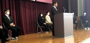 石川教頭⇒東郷学園(校長採用) 山之口教諭⇒財光寺中 仲田教諭⇒退職 宇治野教諭⇒退職 長渡教諭⇒退職 横山教諭⇒大王谷中 佐藤教諭⇒美々津中 山口晃非常勤講師⇒退職 鈴木非常勤講師⇒緑ヶ丘小(新規採用) 内田事務主幹⇒退職、延岡南中再任用 西脇技術員⇒細島小 ↑【放送でのあいさつを待つ離任者の皆さん】