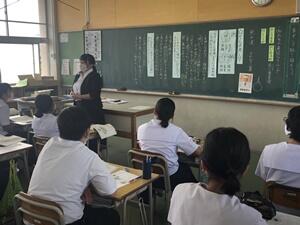 9/14(月)4校時、初任者研修(宮元先生)として道徳の研究授業が1年1組で行われました。多くの先輩教師が参観する中、「さかなクン」の手記を通して、「いじめ」について考えさせる授業でした。1年生は人権学習でも「いじめ」について紙上討論などを取り組んでいますので、自分たちの問題として真剣に考えている姿が見られました。