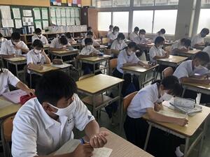 9/3(木)、台風一過、大きな被害もなく、3年PTAあいさつ運動や3年実力テストも再開し、日常に戻りました。ただ、週末の「超大型」の台風10号の接近が予想され、本校にも避難所開設の可能性が出てくるなど、土日の部活動や月曜日の登校などが心配されます。予定の変更などがありましたら、逐次、マチコミやホームページでお知らせしますので、こまめに確認していただけると助かります。ご家庭でも今回以上の備えをお願いします。