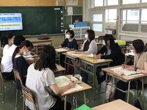 (前回の続き)5校時の研究授業をたたき台として、授業研究会を実施しました。「主体的」は本校の課題でもあり、「対話的な学び」は新画集指導要領の目玉でもあるので、どの教科も活発な議論がなされ、指導主事の指導・助言に真摯に耳を傾けていました。