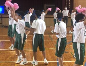 9/29(水)、本日から体育大会のための「全校体育」が始まりました。開会行事の礼の仕方の練習の途中に、残念ながら突然のスコールがあり、中断。雨が上がった後、退場の練習を行いました。