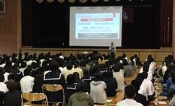11/8(金)午後、3年生の進路説明会を実施しました。11月になり、いよいよ進路について決めなければいけない時期となりました。進学担当の「県立と私立入試の違い」や「受験手続き」の説明があり、体育館はいい緊張感が漂っていました。