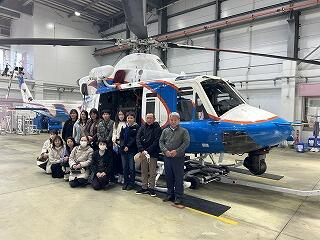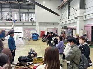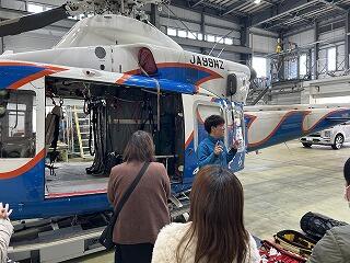 はじめに、曽根崎隊長から防災救急航空センターの業務内容や「あおぞら」の説明があり、その後、「あおぞら」を見学することができました。