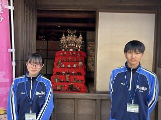〇3月1日(日)に行われた「みみつ町並み・おひなさん祭り」のボランティアとして、1年生から3年生の25名が活動してくれました。