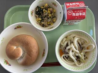 27日が、こめこパン、すき焼きうどん、ツナのかつのりサラダ