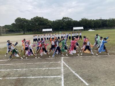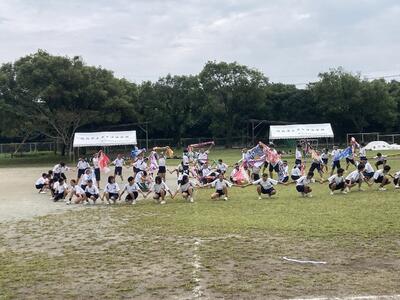 間と共に!~」の下、河野澪奈実行委員長が18日間の練習を引っ張ってきました。生憎の天候となしましたが、生徒たちは、徒走・リレー・団技・応援等に誰一人手を抜くことなく、一生懸命取り組んでくれました。徒走やリレーでは、転倒するアクシデントもあり、練習の時とは違う結果となりましたが、最後まであきらめず走りぬく姿に感動させられました。