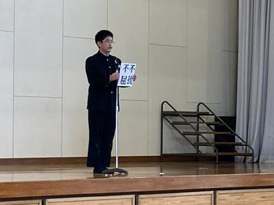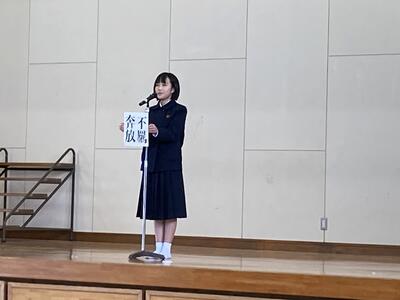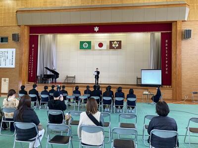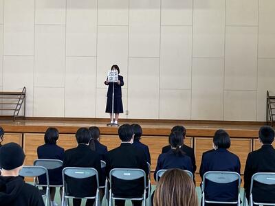 本校では、『立志の集い』と題して、これからの目標を4字の熟語で表現し、決意を述べる形で実施しました。それぞれがしっかりと自分と向き合い、これからの目標を保護者の前で立派に宣言する]ことができました。