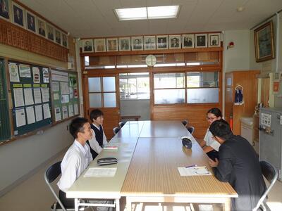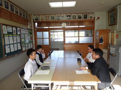 校長が今後の美々津中学校の展望を語る対談を開きまし
