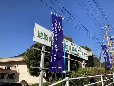 美々津中校区あいさつ運動標語がのぼり旗に!