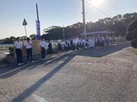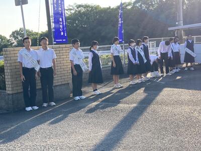 佳境に差しかかりました。各学年から立候補した7人が毎朝、校門付近に応