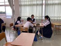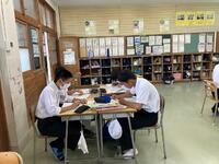 中でも、『生徒同士の学び合いの場の設定』が美々津スタイル学習の目玉で、各学年3~4人のグループに分け、3学年合同の斑をつくります。1斑9~11人の斑になり、学年の枠を越えて学習するという形式です。テスト前などに計画し、生徒同士の学び合いの場を設定しています。今回は、テスト前ではありませんが、本学習を通して子どもたちの学習意欲の喚起に役立てられればと思っています。
